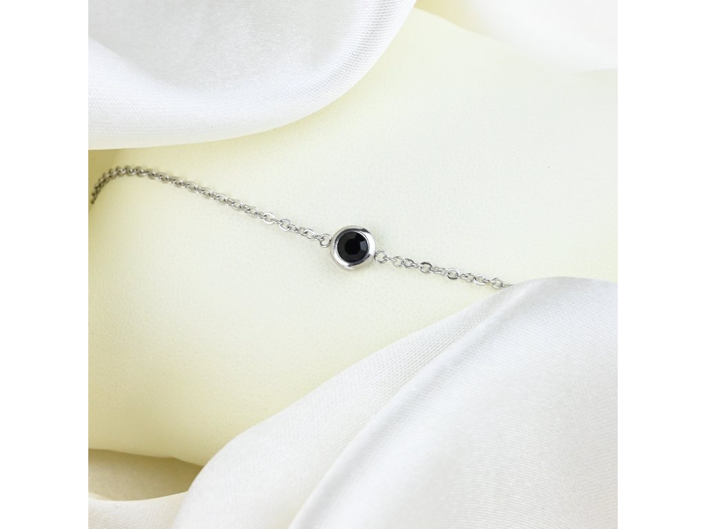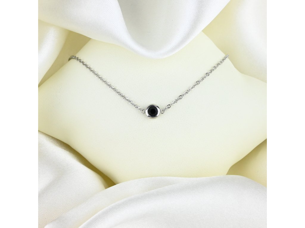 Tento ocelový náhrdelník nabízí nadčasový a elegantní design s výrazným středovým prvkem – černým kulatým zirkonem, který dodává šperku sofistikovanou a tajemnou hloubku. Zirkon svou tmavou barvou kontrastuje s lesklým povrchem oceli, čímž vzniká šperk, který je výrazný, přitom stále minimalistický a elegantní.