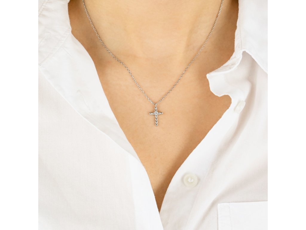 Stříbrný náhrdelník s křížkem zdobeným zirkonem - Meucci SN138
