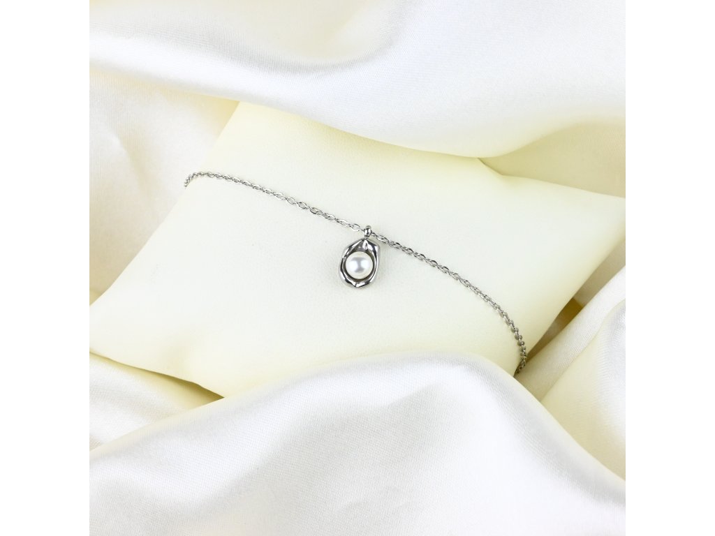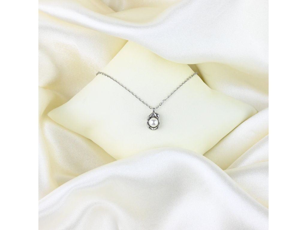 Ocelový náhrdelník s perlou nabízí kombinaci jednoduchosti a jemného luxusu. Perla je elegantně uložená v přívěsku, což zdůrazňuje její tvar a přirozenou krásu. Celý náhrdelník působí vyváženě a decentně, ideálně doplňuje různé styly oblečení.