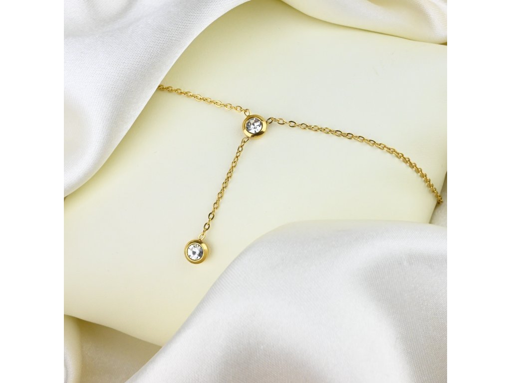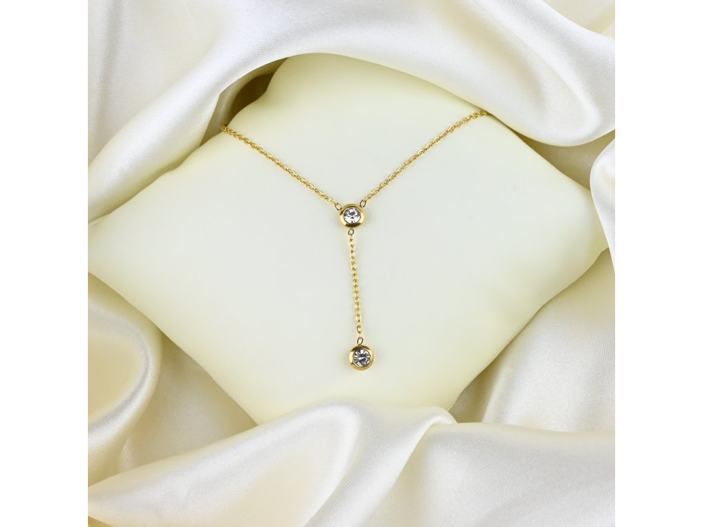 Pozlacený ocelový náhrdelník s visací ozdobou a zirkony kombinuje jednoduchost a jemný design. Vyrobený z chirurgické oceli, působí odolně a zároveň elegantně. Hlavní ozdobou náhrdelníku je visací prvek, který je zdobený zirkony, jež dodávají šperku jemný lesk a sofistikovaný vzhled.