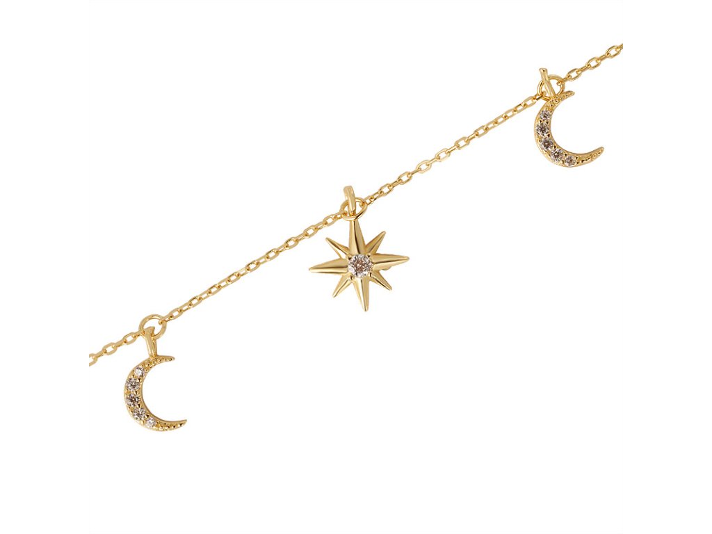 Pozlacený stříbrný náhrdelník s hvězdami a půlměsíci je elegantním spojením přírodních motivů a moderního designu. Vyrobený ze stříbra ryzosti 925/1000 a opatřený žlutým zlacením (14K), tento šperk vyniká svou kvalitou a nadčasovým vzhledem.