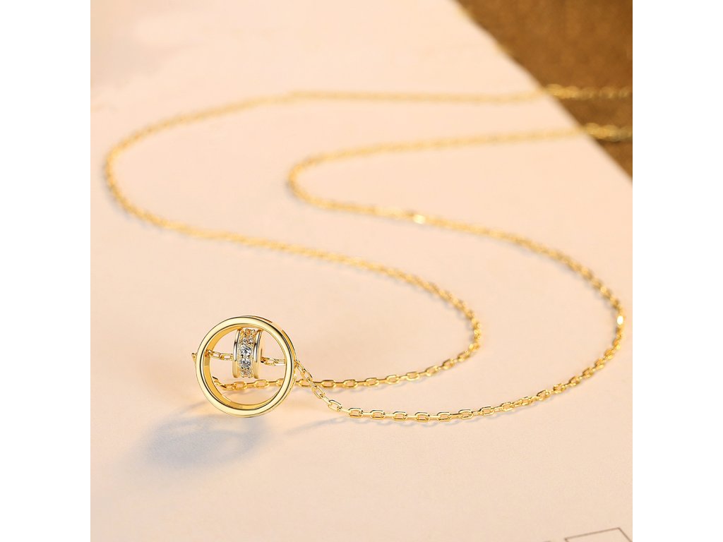 Pozlacený stříbrný náhrdelník s kroužky a zirkony je elegantním spojením moderního designu a třpytivých detailů. Vyroben je ze stříbra ryzosti 925/1000 a opatřen žlutým zlacením (14K), které zajišťuje dlouhotrvající lesk a odolnost.