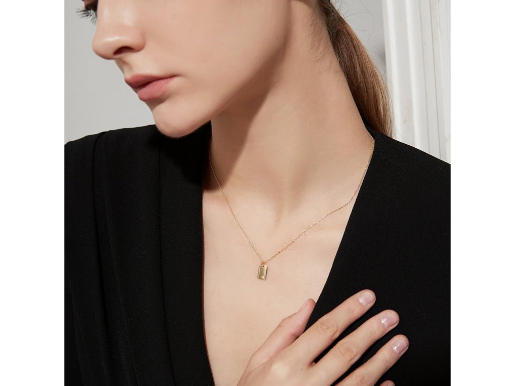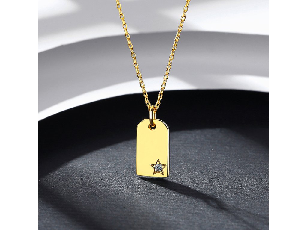 Pozlacený stříbrný náhrdelník s plackou a hvězdou se zirkonem spojuje moderní design s jemnými třpytivými detaily. Vyroben je ze stříbra ryzosti 925/1000 a opatřen žlutým zlacením (14K), což zajišťuje dlouhotrvající lesk a odolnost šperku.