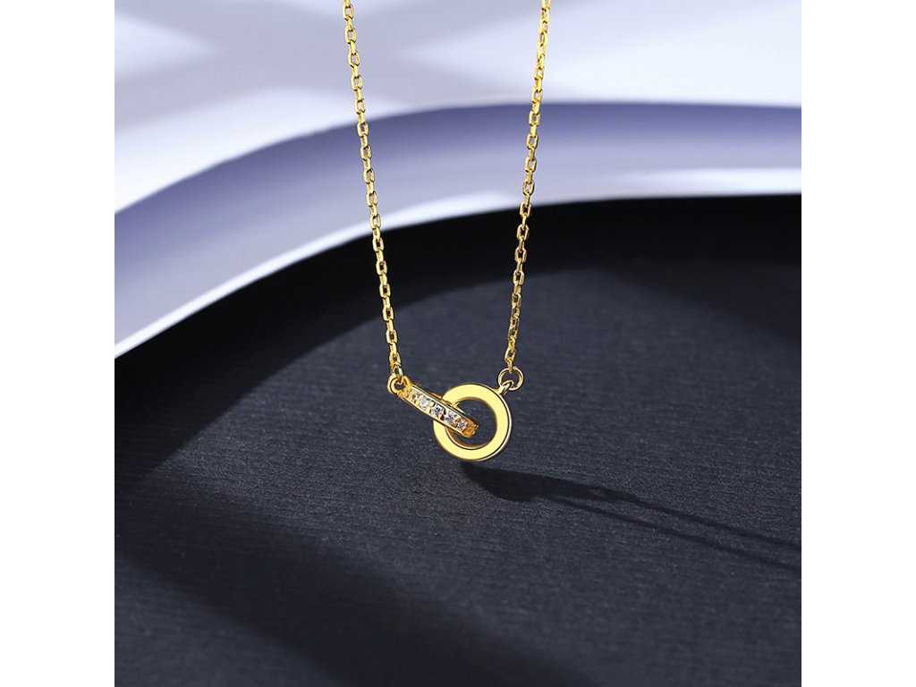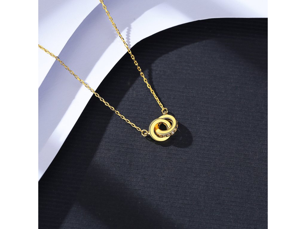 Pozlacený stříbrný náhrdelník se spojenými kroužky a zirkony je elegantním spojením moderního designu a třpytivých detailů. Vyrobený ze stříbra ryzosti 925/1000 a opatřený žlutým zlacením (14K), tento šperk vyniká svou kvalitou a nadčasovým vzhledem.