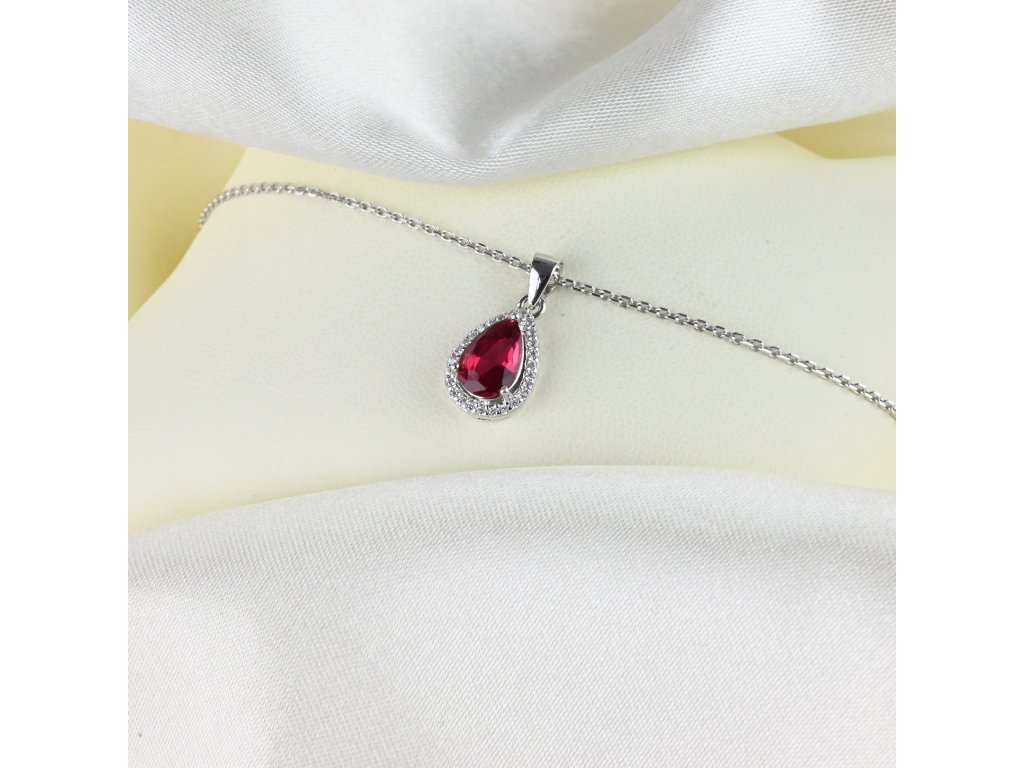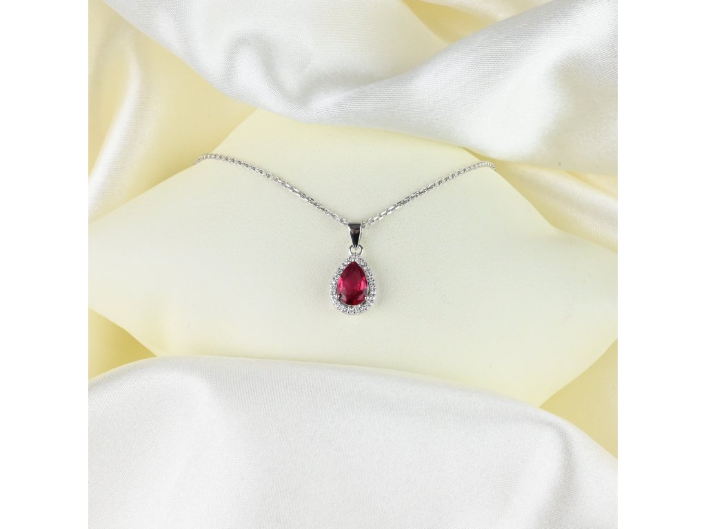 Stříbrný náhrdelník s červeným kapkovým zirkonem – Meucci SS374N