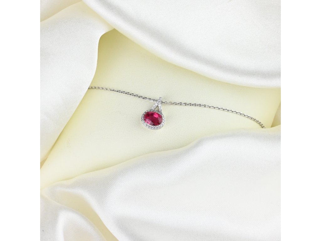 Stříbrný náhrdelník s červeným oválným zirkonem - Meucci SS371N
