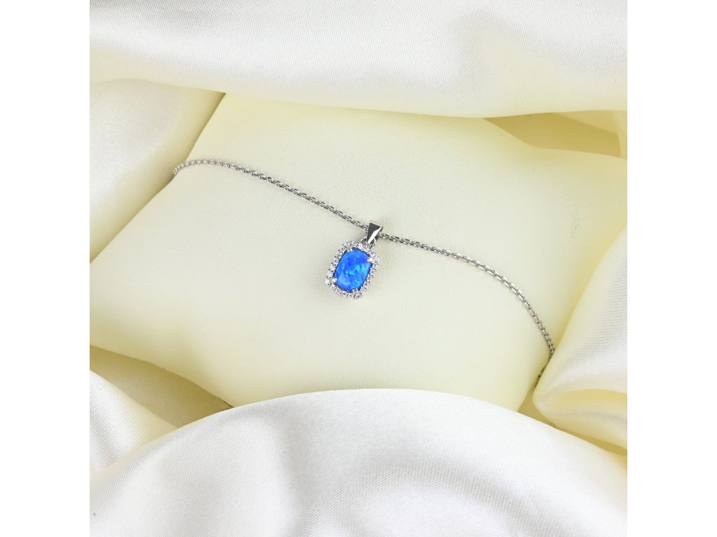 Stříbrný náhrdelník s čtvercovým opálem a zirkony - Meucci SS377N