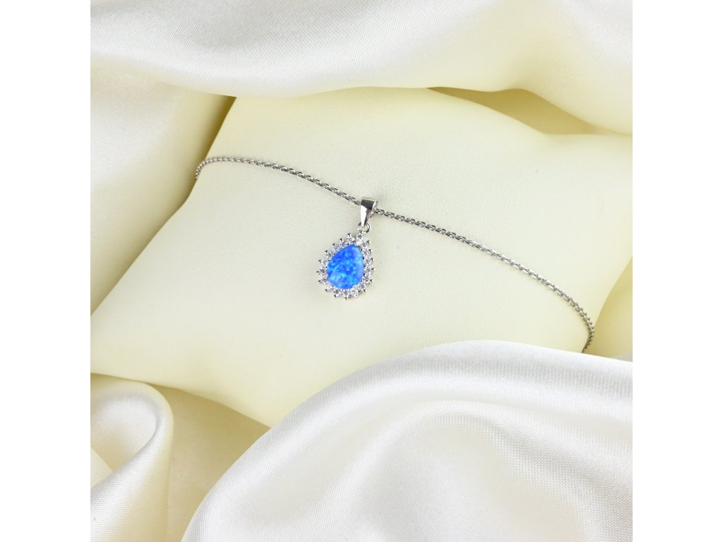 Stříbrný náhrdelník s kapkovým opálem a zirkony - Meucci SS381N