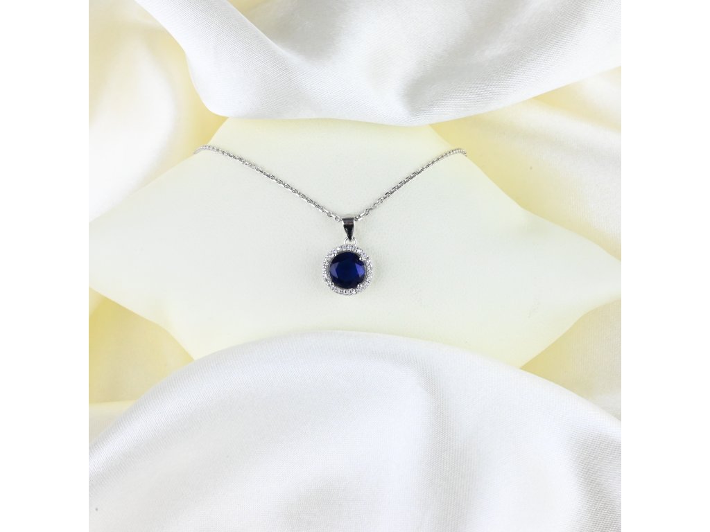 Stříbrný náhrdelník s kulatým modrým zirkonem - Meucci SS372N