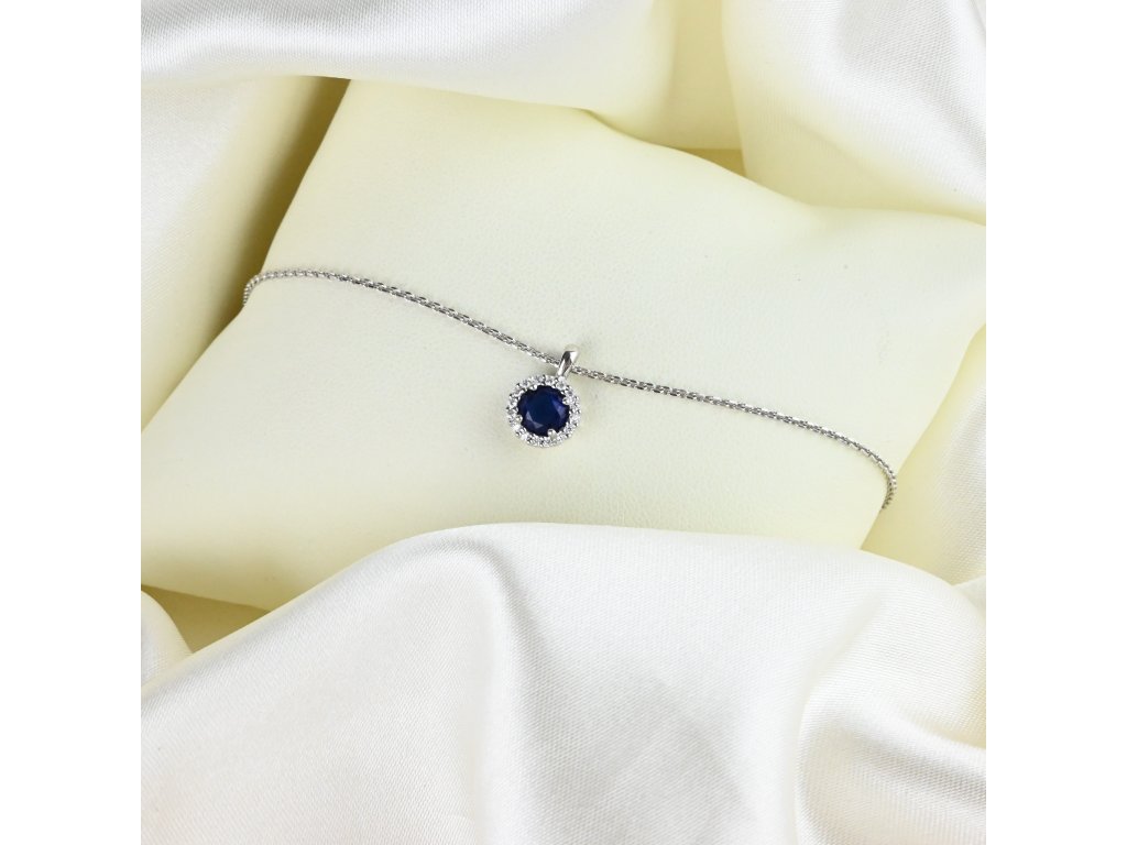 Stříbrný náhrdelník s kulatým modrým zirkonem - Meucci SS387N