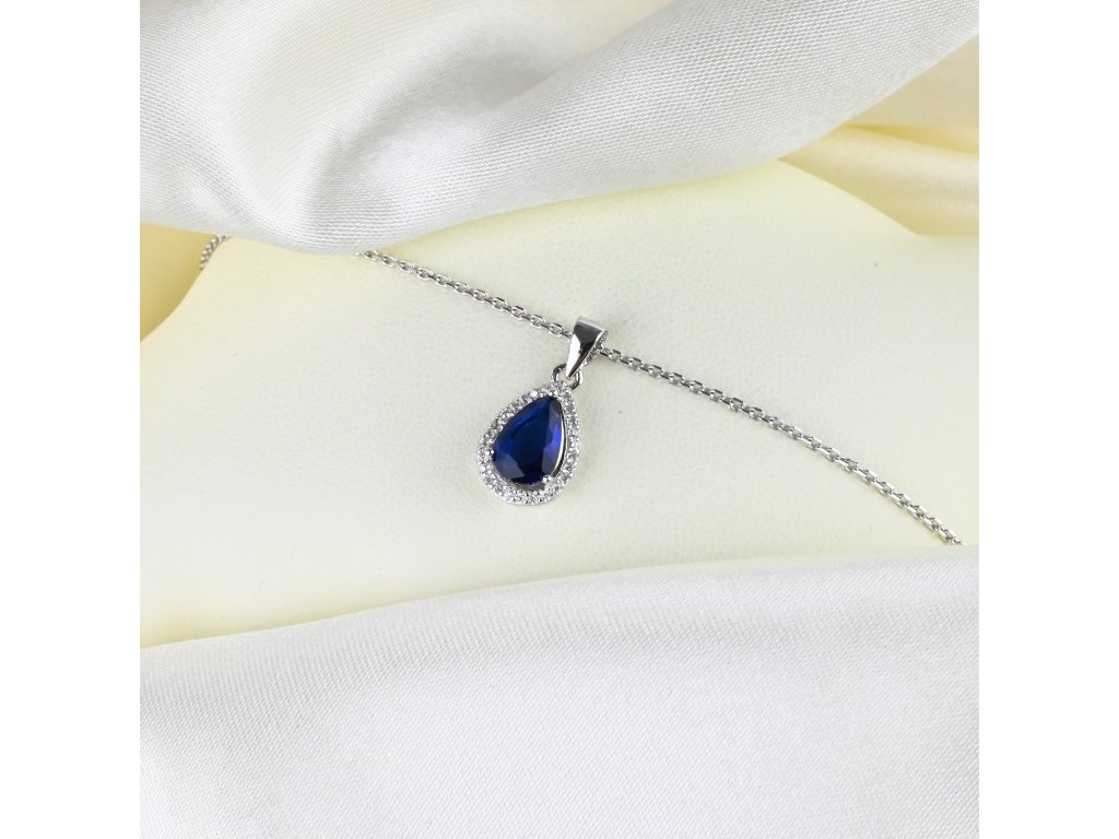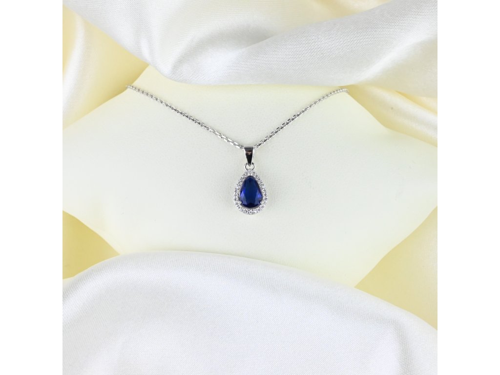 Stříbrný náhrdelník s modrým kapkovým zirkonem - Meucci SS374N