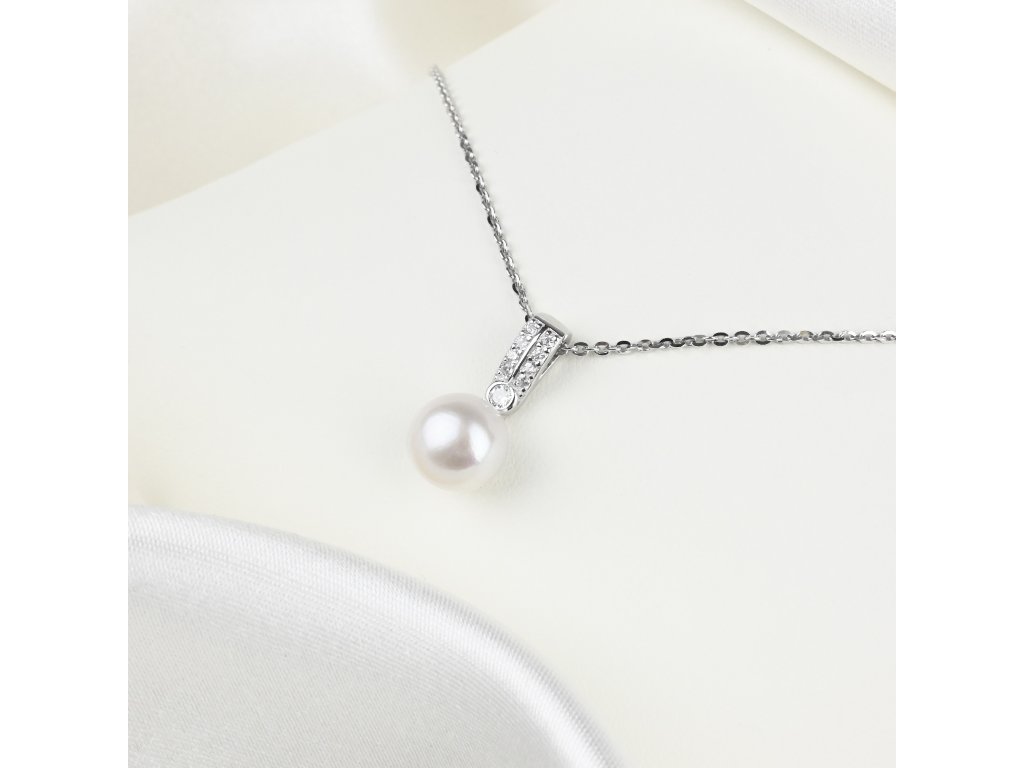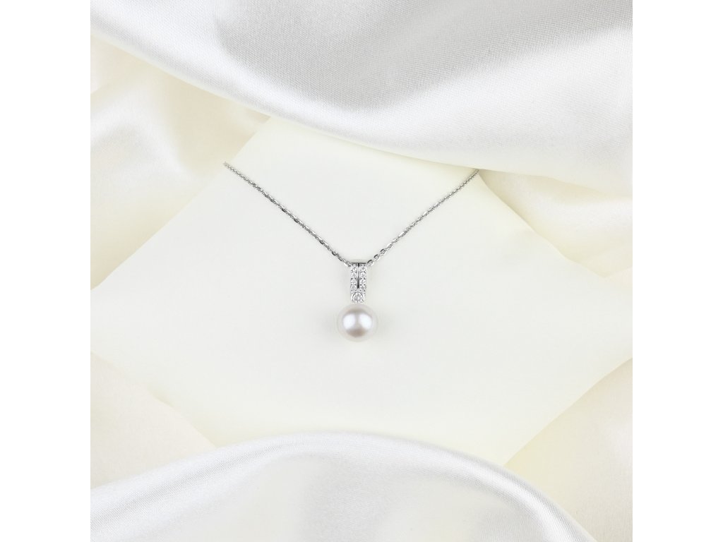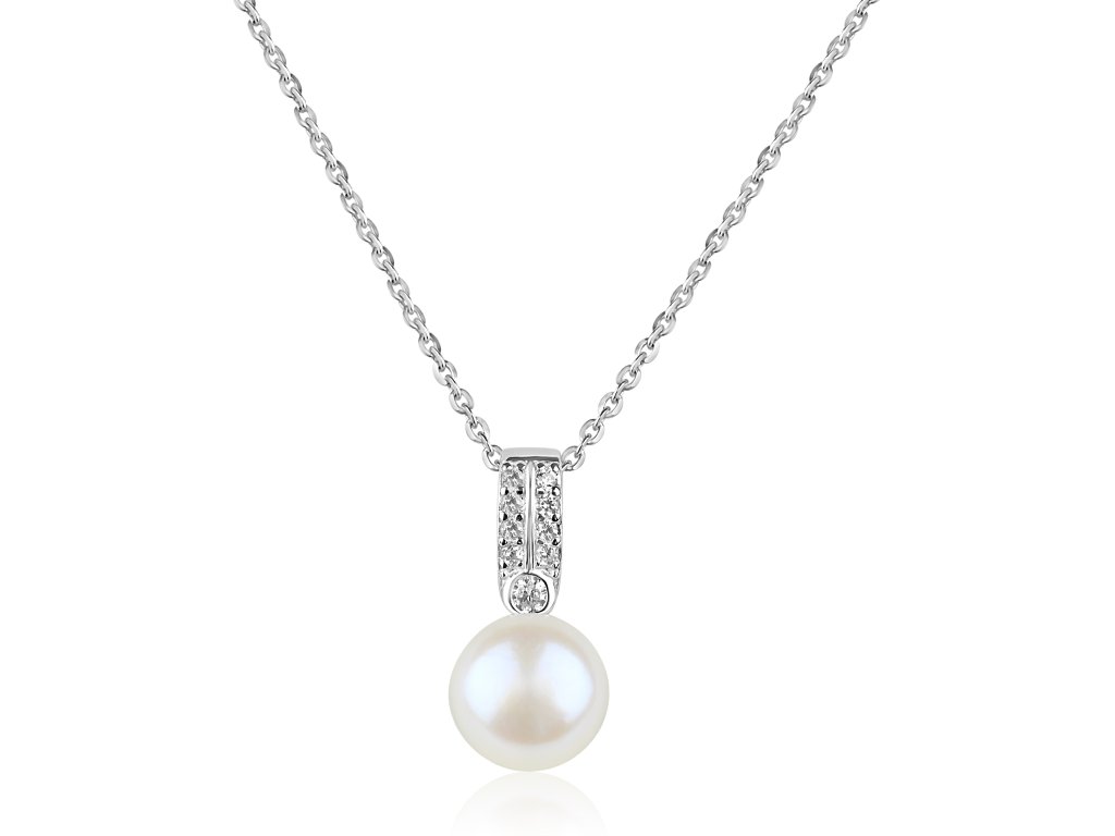 Stříbrný náhrdelník s perlou a zirkony - Meucci SP106N