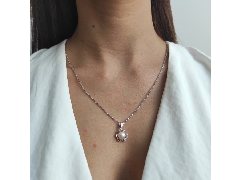 Stříbrný náhrdelník s perlou uprostřed zirkonové ozdoby - Meucci SP72N