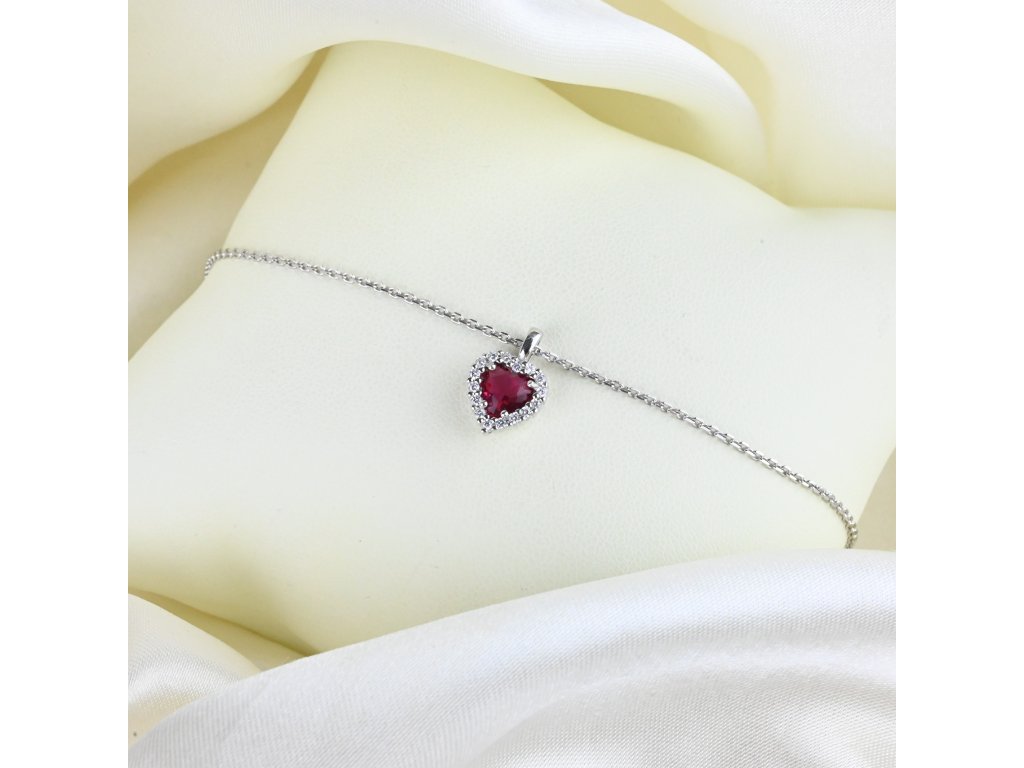 Stříbrný náhrdelník se srdíčkem a červeným zirkonem - Meucci SS368N