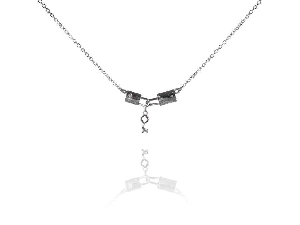 Jak najít klíč k lásce? Jak zařídit, aby se do vás fatálně zamiloval ten pravý? Pravidla lásky jsou velmi jednoduchá: Přijde, když to nečekáte a když vůbec o nic neusilujete. Láska si vás najde úplně sama. A možná vám pomůže najít lásku také tento stříbrný náhrdelník se zirkonovými zámky a klíčkem.