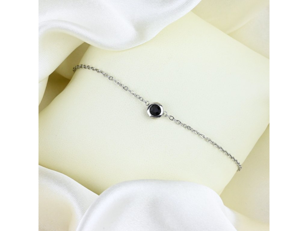 Tento ocelový náramek spojuje minimalistický design s výrazným středovým prvkem – černým kulatým zirkonem, který přidává šperku hloubku a sofistikovanou eleganci. Zirkon svou tmavou barvou kontrastuje s lesklým povrchem oceli, čímž vzniká náramek, který je výrazný, přitom stále jemný a nadčasový.