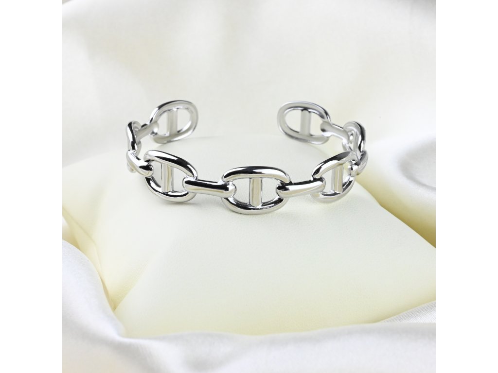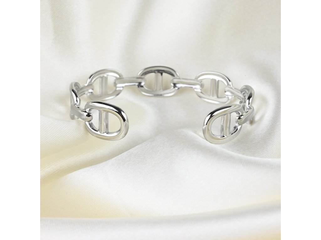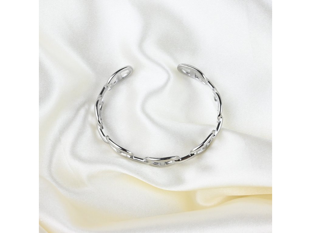 Tento pevný pozlacený ocelový náramek se spojenými ornamenty je perfektní volbou pro večerní setkání, formální události i elegantní běžné nošení. Hodí se k minimalistickému stylu, kde funguje jako středobod, nebo v kombinaci s jemnějšími náramky pro moderní vrstvený efekt.