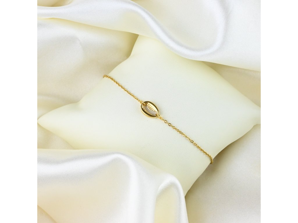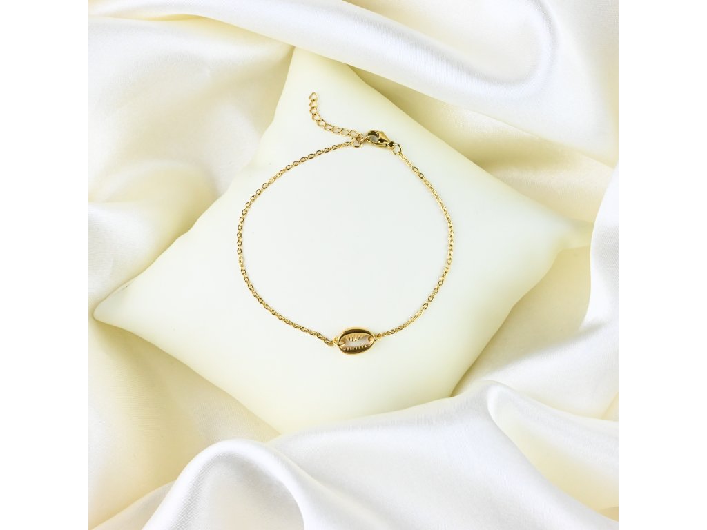 Objevte jemnou eleganci s naším pozlaceným ocelovým náramkem s mušlí. Tento šperk je vyroben z pevné pozlacené chirurgické oceli s hladkým, lesklým povrchem, který zajišťuje dlouhodobou odolnost a zachování vzhledu. Minimalistický řetízek je kombinován s jemným detailem – přívěskem ve tvaru mušle – který dodává náramku osobitý charakter a námořnickou inspiraci.