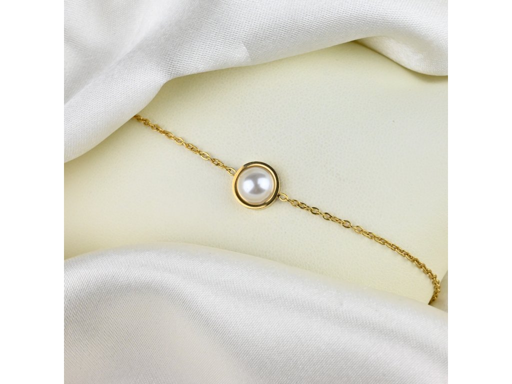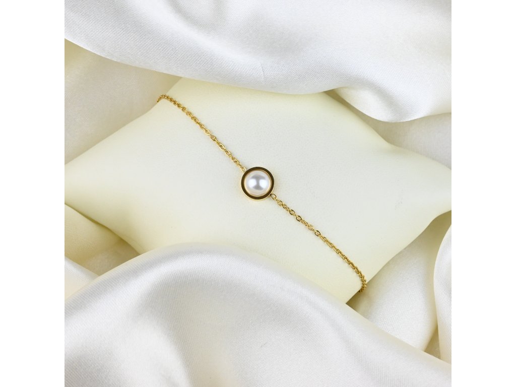 Objevte dokonalou kombinaci jemného designu a nadčasového stylu s naším pozlaceným ocelovým náramkem s perlou. Tento šperk je vyroben z vysoce kvalitní pozlacené chirurgické oceli s hladkým, lesklým povrchem, který zajišťuje dlouhodobou odolnost a zachování lesku. Náramek tvoří jemný řetízek, jehož středový prvek tvoří elegantní čtvercový rám uvnitř něhož je umístěna perla s jemným, přirozeným leskem. Tento kontrast mezi kovovou geometrií a jemnou perlou dodává šperku sofistikovaný a moderní vzhled.