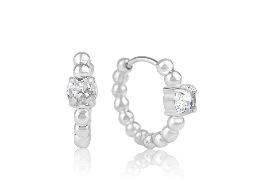 Ocelové náušnice kroužky s kulatým čirým zirkonem - Meucci DE631