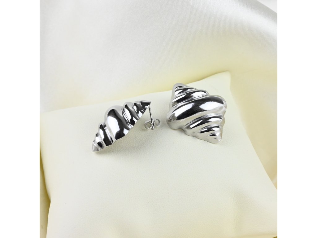 Tyto náušnice z kvalitní chirurgické oceli jsou dokonalým spojením elegance a hravé originality. Jejich tvar inspirovaný croissantem přináší do světa šperků nový rozměr – měkké linie a jemné zakřivení vytvářejí dojem lehkosti, zatímco pevná struktura oceli zaručuje odolnost a dlouhou životnost. Lesklý kovový povrch zachycuje světlo a dodává šperku sofistikovaný třpyt, který působí čistě, moderně a přitom ženským dojmem.