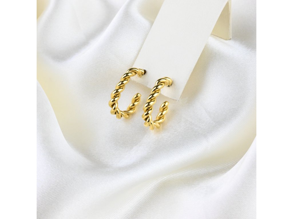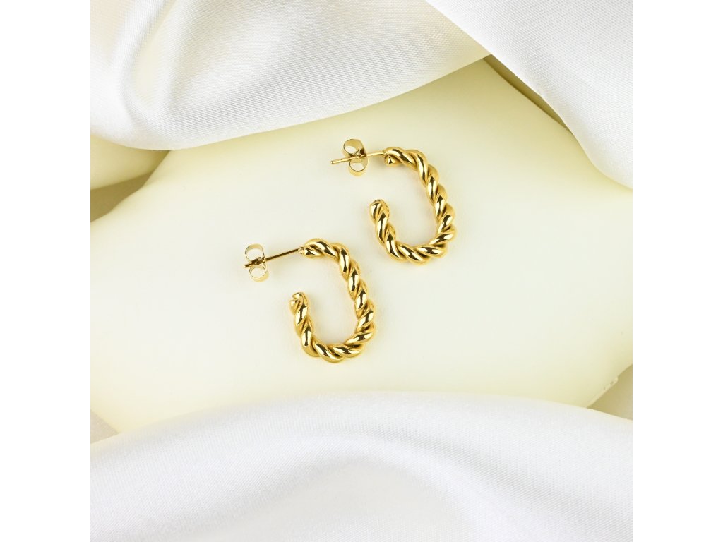 Tyto náušnice z vysoce kvalitní chirurgické oceli s pozlacenou úpravou představují spojení pečlivého řemesla a výrazné estetiky. Pletený vzor vytváří jemnou strukturu – jako by jednotlivá vlákna byla propojena, vytvářela spojení a harmonický celek. Lesklý zlatavý povrch zachycuje světlo a přidává šperku pocit luxusu a výjimečnosti.