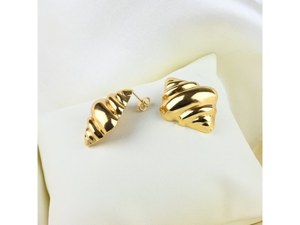 Tyto náušnice z kvalitní oceli s pozlacenou úpravou představují dokonalé spojení originální formy a nadčasového vzhledu. Tvar připomínající croissant v sobě nese jemnou dynamiku a zakřivení, jež vtahuje světlo. Zlato-lesklý povrch podtrhuje eleganci a dává šperku charakter, který se hodí pro každý den i výjimečné chvíle.