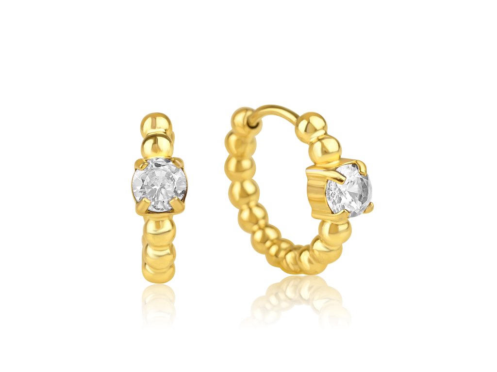 Pozlacené ocelové náušnice kroužky s kulatým čirým zirkonem - Meucci DE630