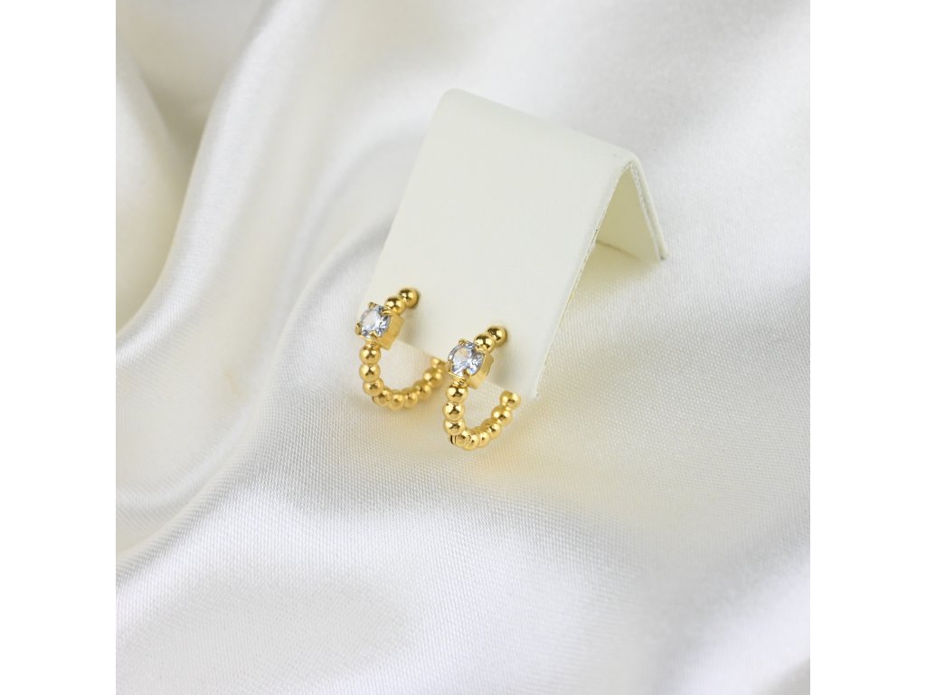 Náušnice jsou vyrobeny z kvalitní oceli s pozlacenou úpravou, která zajišťuje dlouhotrvající lesk a odolnost vůči opotřebení. Kloubové zapínání umožňuje snadné nasazení a bezpečné nošení, což zaručuje komfort po celý den. Tyto náušnice jsou ideální volbou pro každodenní nošení i slavnostnější příležitosti.