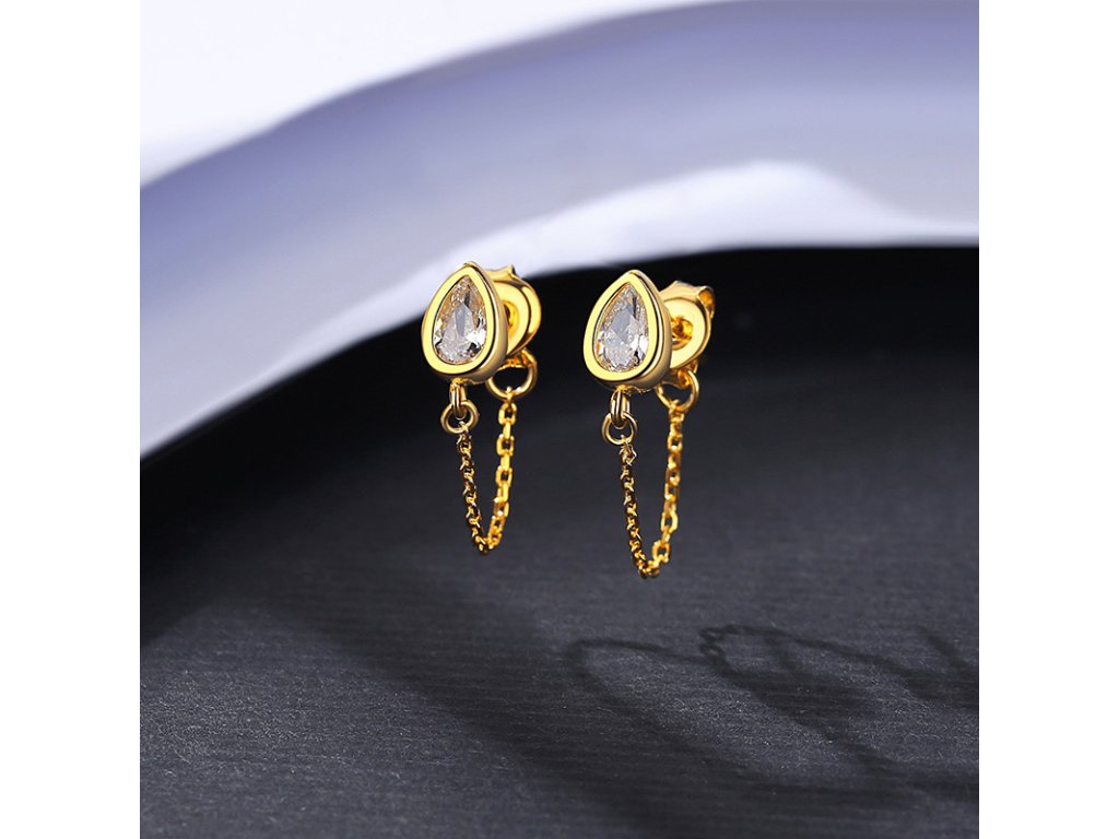 Tento kousek nabízí dokonalou rovnováhu mezi jemností a moderní hravostí – drobný řetízek přidává do designu dynamiku, zatímco kapka zůstává elegantně dominantní. Náušnice jsou skvělou volbou pro speciální příležitosti, stejně jako pro chvíle, kdy chcete jednoduše doplnit svůj vzhled něčím stylovým a neotřelým.