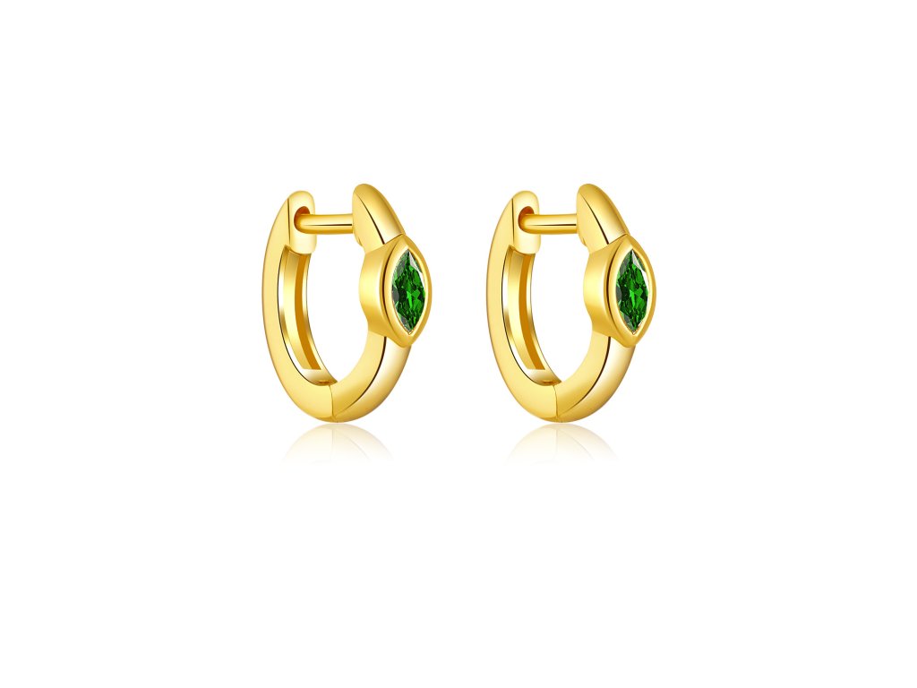 Pozlacené stříbrné náušnice kroužky se zelenými zirkony - Meucci SYE153