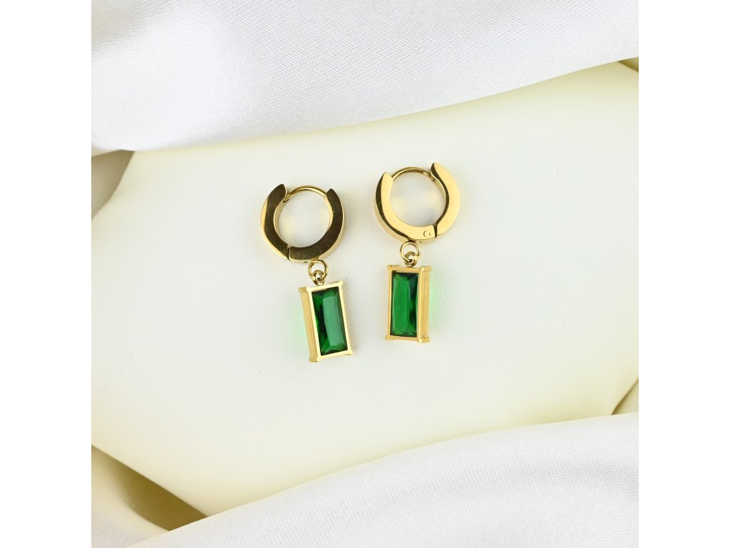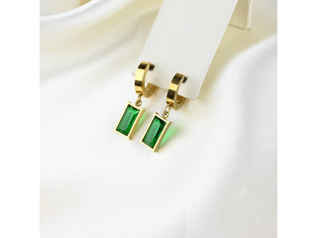Tyto náušnice z kvalitní chirurgické oceli se zlatou úpravou představují harmonii mezi výrazným detailem a decentním provedením. Visací tvar dodává šperku pocit volnosti a lehkosti — zirkon v zelené barvě pak evokuje životní energii, růst a přírodní svěžest. Lesklý povrch zlacené oceli zachytává světlo s noblesou a podtrhuje ženský vzhled, aniž by působil přehnaně.