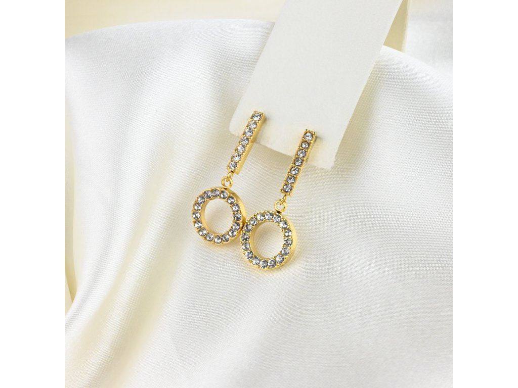 Pozlacené visací ocelové náušnice se zirkony - Meucci DE556