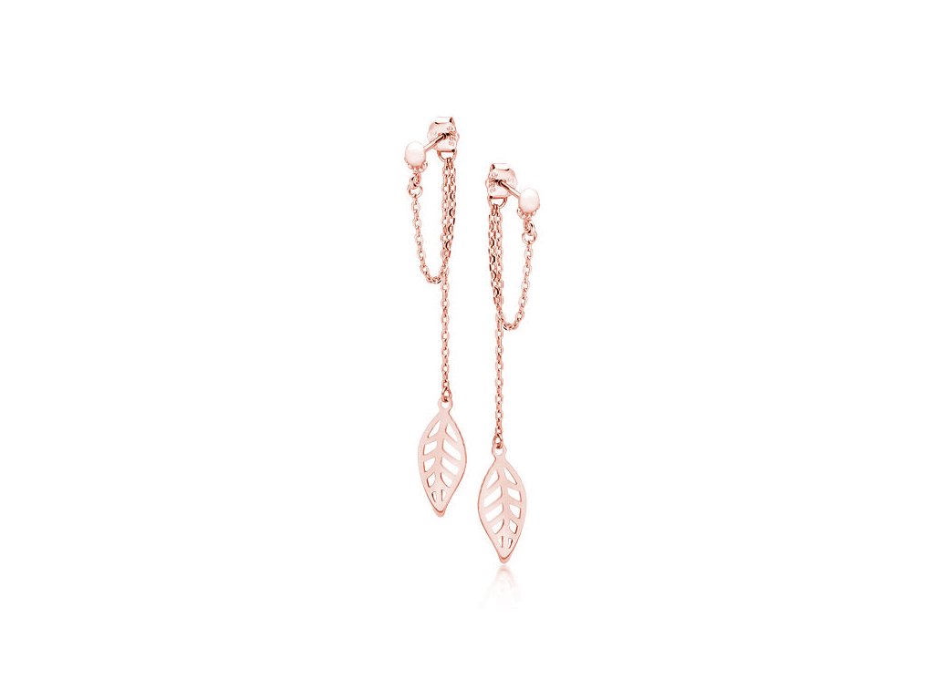 Rose gold visací náušnice s lístkem - Meucci SLE360