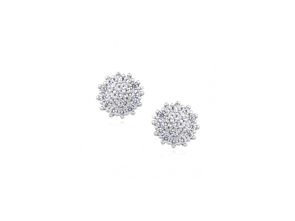 Stříbrné náušnice jsou vyrobeny ze stříbra rhodiovaného. Proto vynikají především svým leskem. Jedná se o typ náušnic, který se nazývá „pecky“. Ty jsou kulatého tvaru a jsou posázeny mnoha čirými kubickými zirkony. Zapínají se na puzetu.