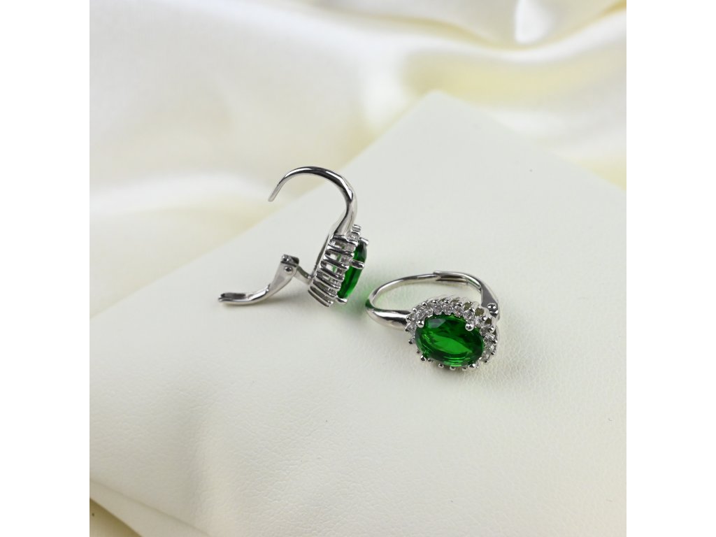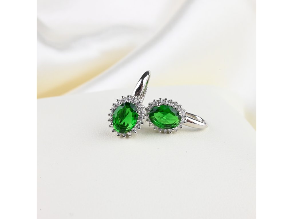 Stříbrné náušnice s oválným zeleným zirkonem - Meucci SE420