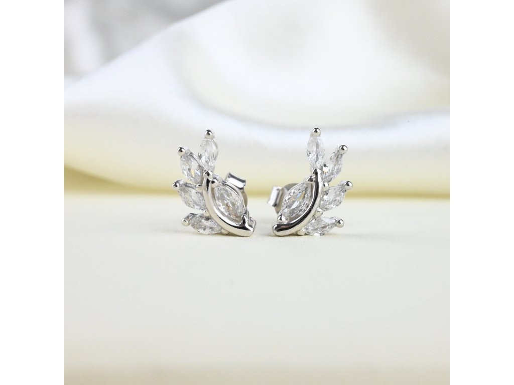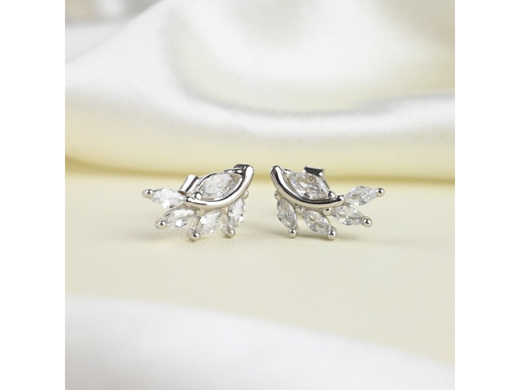 Stříbrné náušnice větvička ze zirkonovými lístky - Meucci SE404