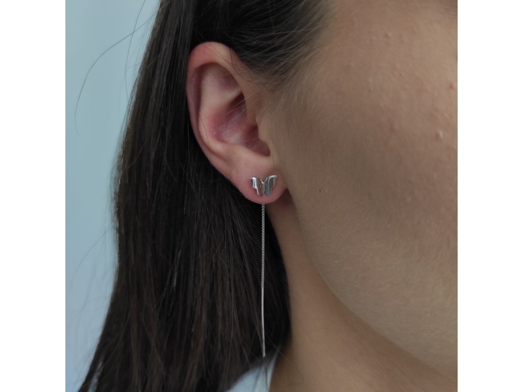 Stříbrné visací náušnice s jemným motýlkem - Meucci SLE389