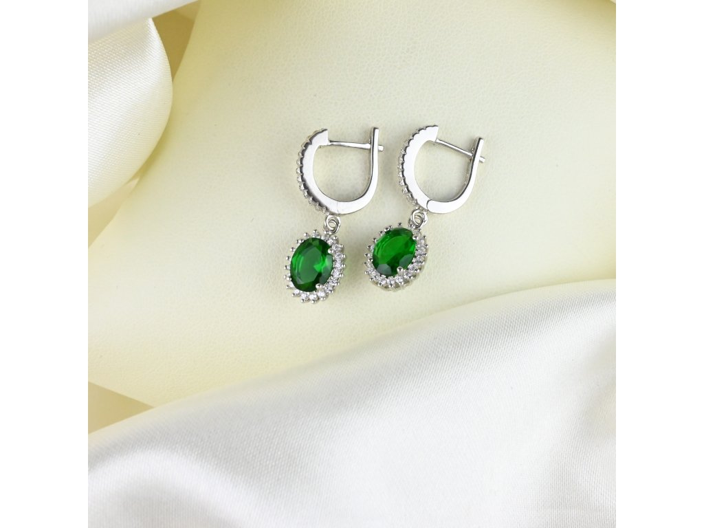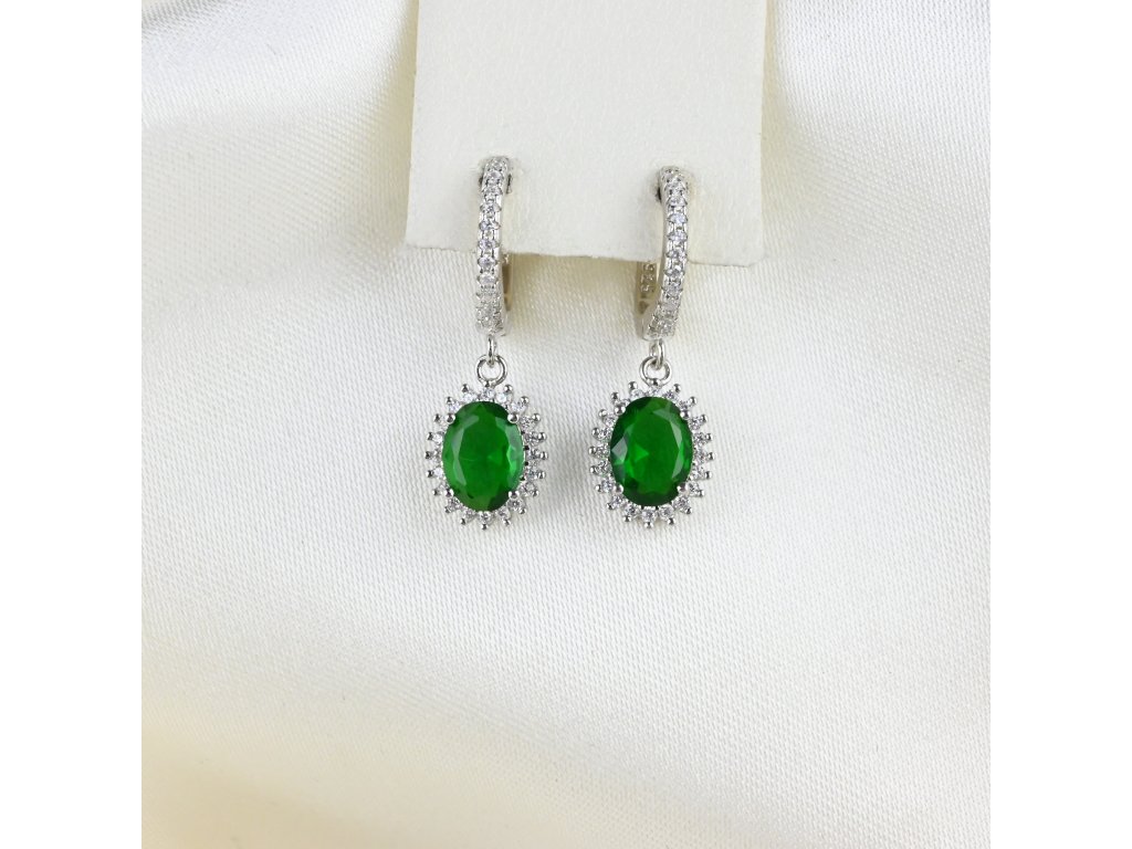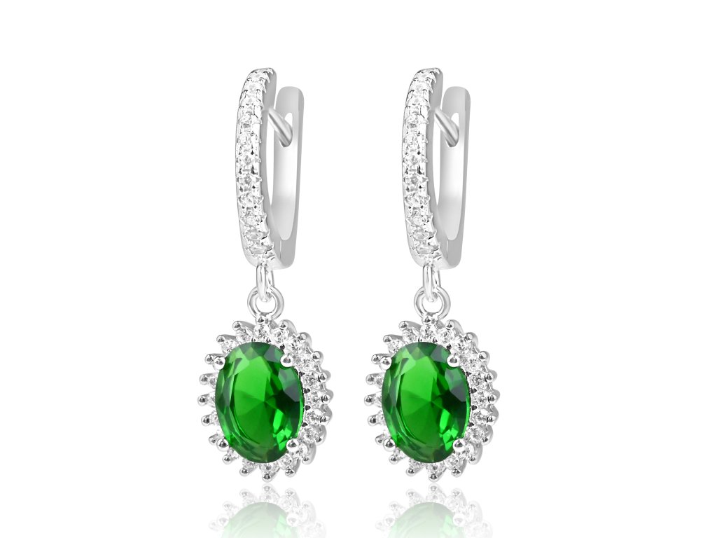 Stříbrné visací náušnice s oválným zeleným zirkonem - Meucci SE367/02