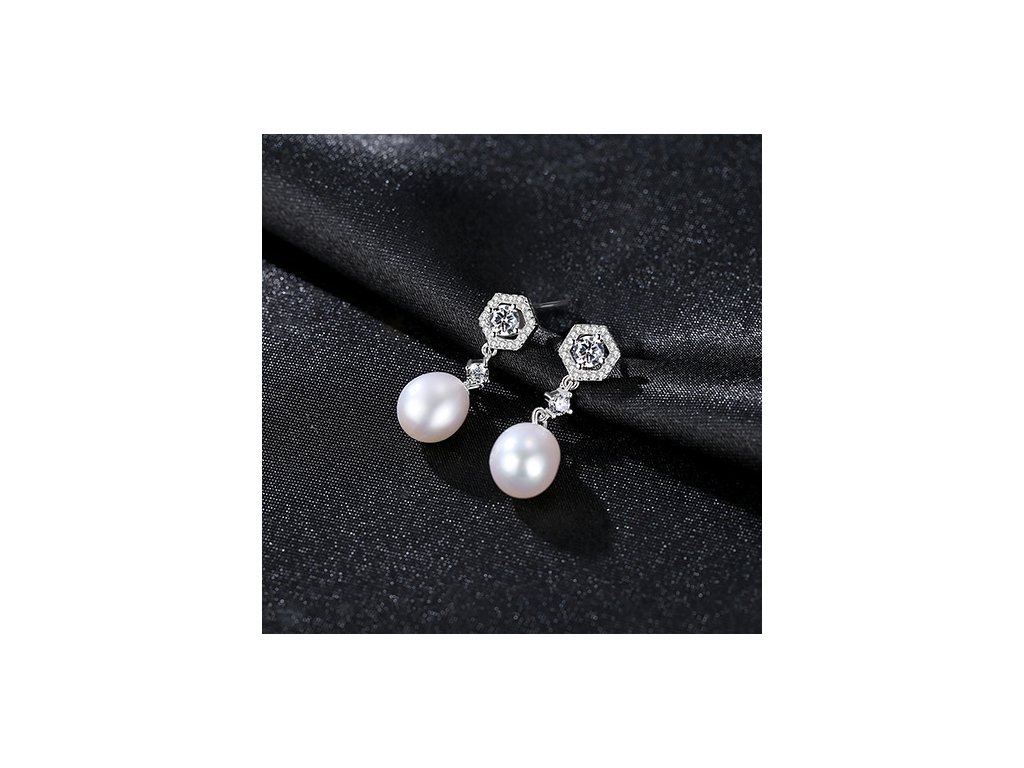 Visací stříbrné náušnice s říční perlou a zirkony - Meucci SYE155