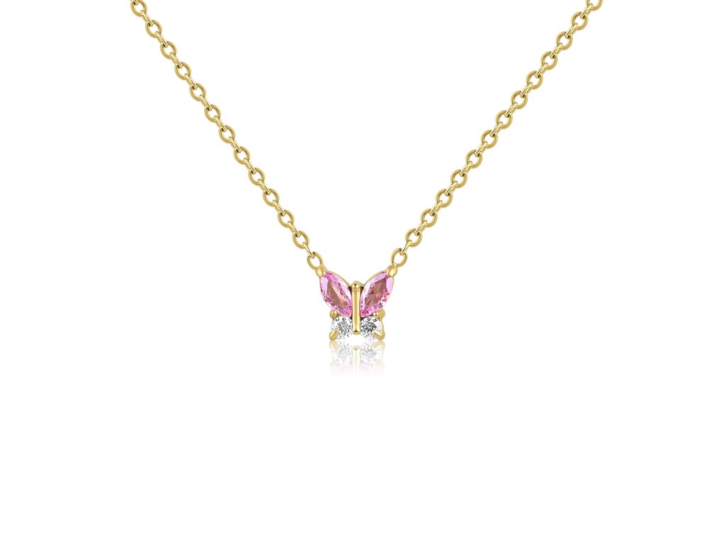 Pozlacený ocelový náhrdelník s motýlem z růžových a čirých zirkonů - Meucci DS492
