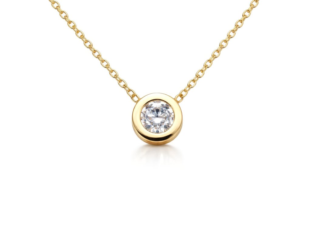 Pozlacený ocelový náhrdelník s velkým čirým zirkonem - Meucci DS507N