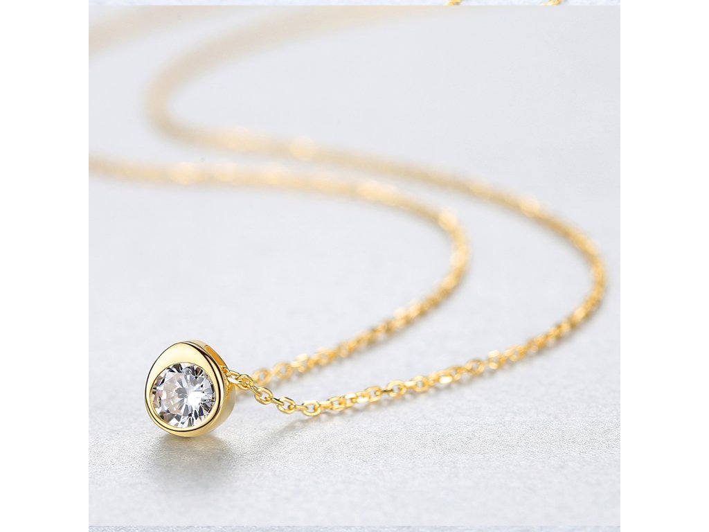 Představujeme vám šperk, který spojuje kvalitu a eleganci — pozlacený stříbrný náhrdelník s kulatým čirým zirkonem. Tento náhrdelník je vyroben ze stříbra ryzosti 925/1000, což zajišťuje jeho dlouhou životnost a odolnost. Je opatřen vrstvou žlutého zlata (14K), která mu dodává luxusní vzhled.
