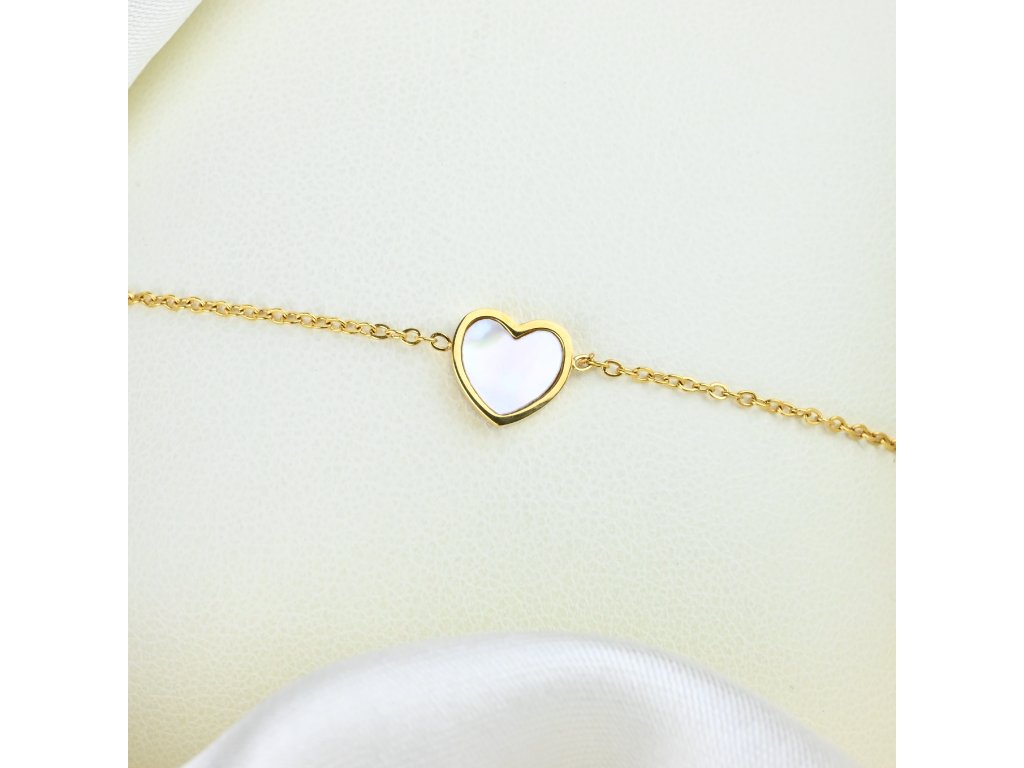 Pozlacený ocelový náramek s perleťovým srdíčkem - Meucci DS488