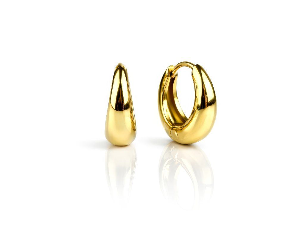 Pozlacené ocelové kroužkové náušnice představují klasický šperk, který nikdy nevyjde z módy. Jejich jednoduchý a čistý design působí elegantně a snadno se kombinuje s různými styly – od ležérních až po formální outfity.