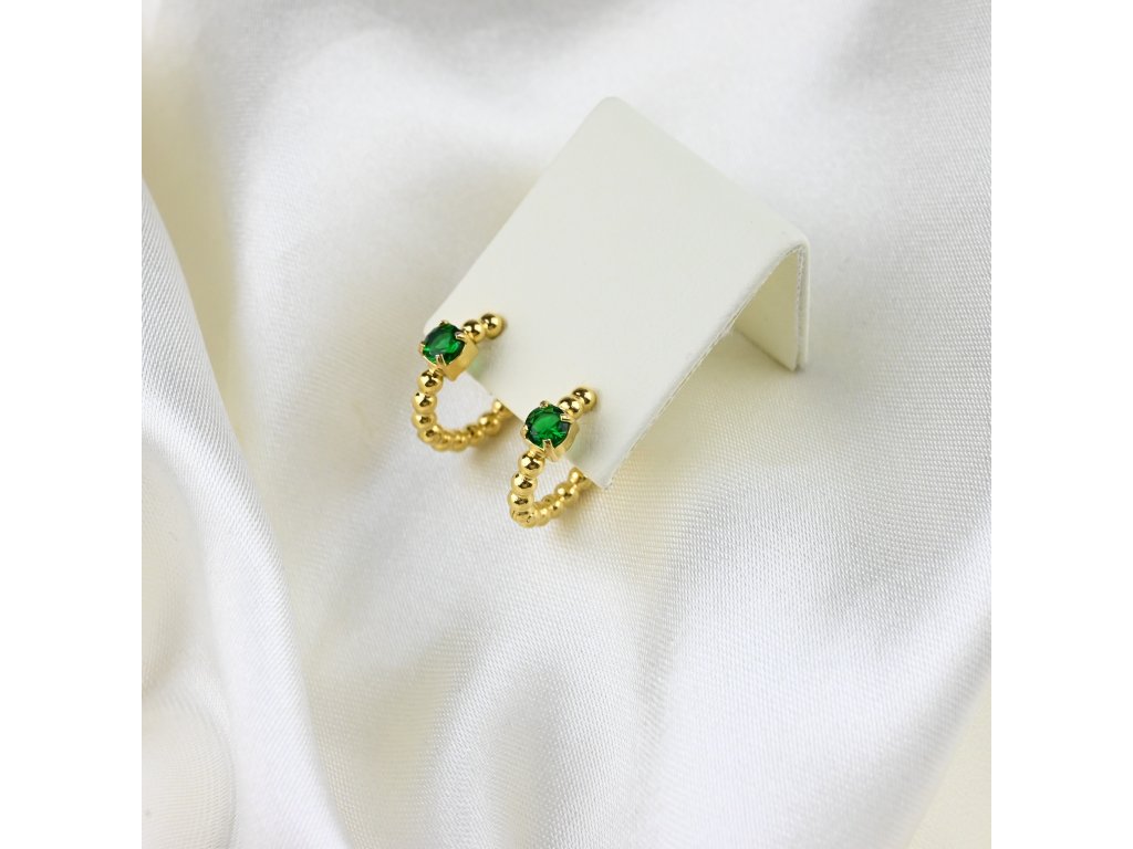 Výrazným prvkem každé náušnice je kulatý zelený zirkon, jenž přináší svěží barevný akcent a krásně kontrastuje se zlatým povrchem náušnic. Zirkon jemně odráží světlo a dodává šperku sofistikovaný lesk.