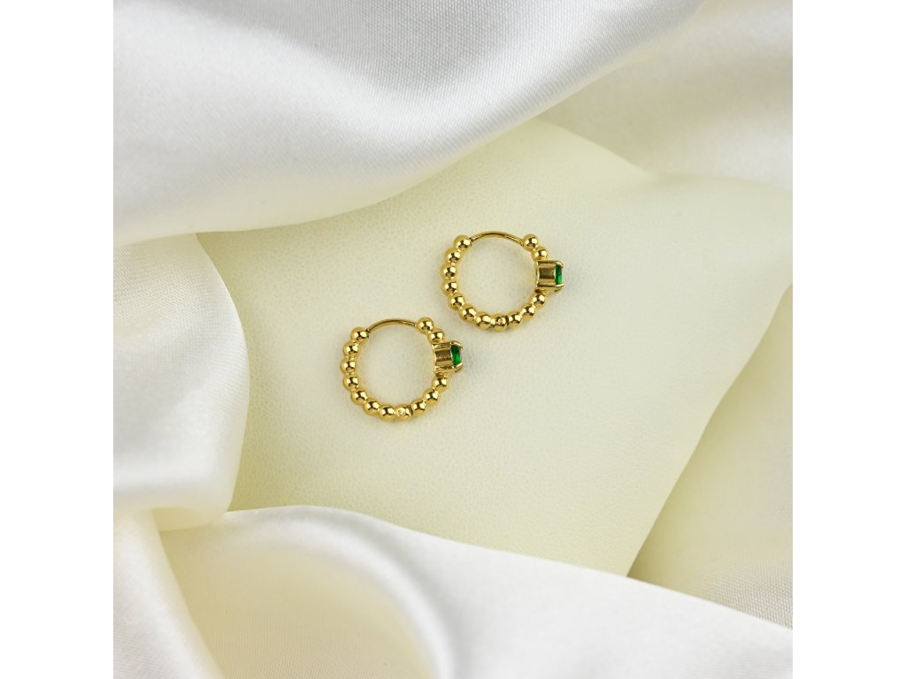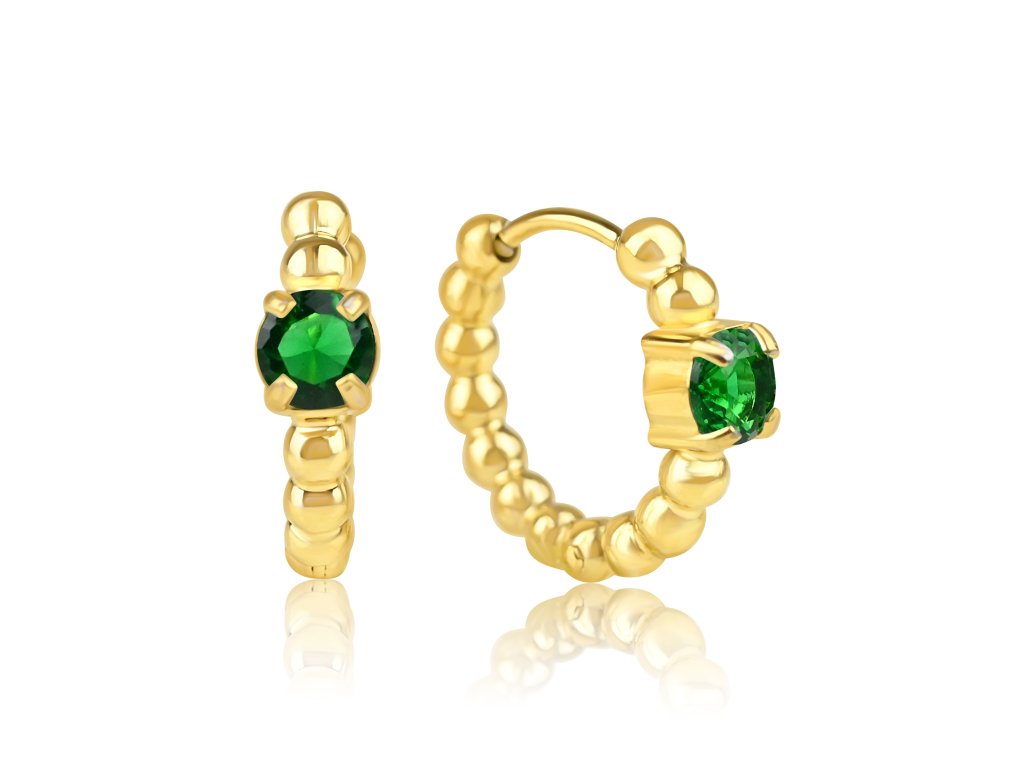 Pozlacené ocelové náušnice kroužky s kulatým zelným zirkonem - Meucci DE628