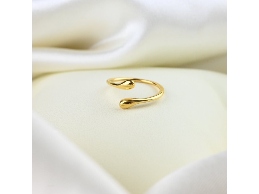 Pozlacená chirurgická ocel zajišťuje vysoký lesk, odolnost a dlouhotrvající kvalitu, takže prsten si zachovává svůj elegantní vzhled i při každodenním nošení. Jemný, minimalistický design přitahuje pohled a působí sofistikovaně a moderně.