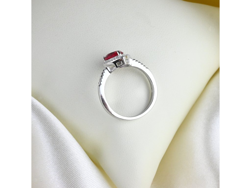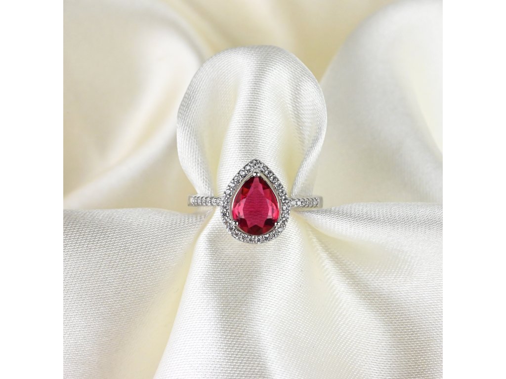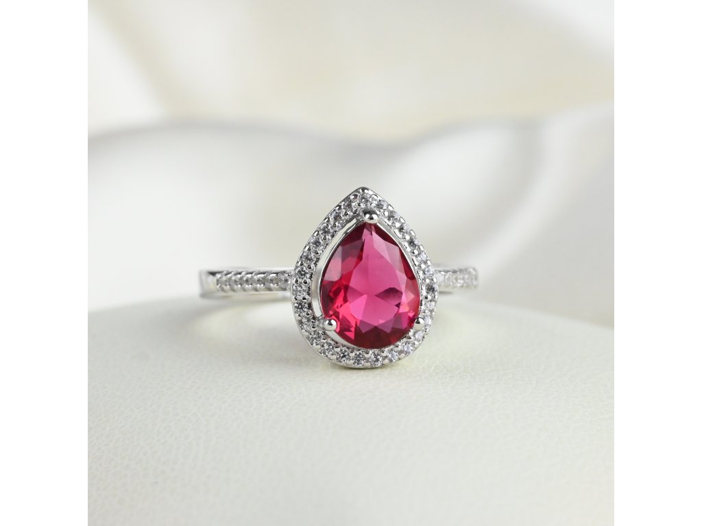 Stříbrný prsten s červeným kapkovitým zirkonem - Meucci SS373R