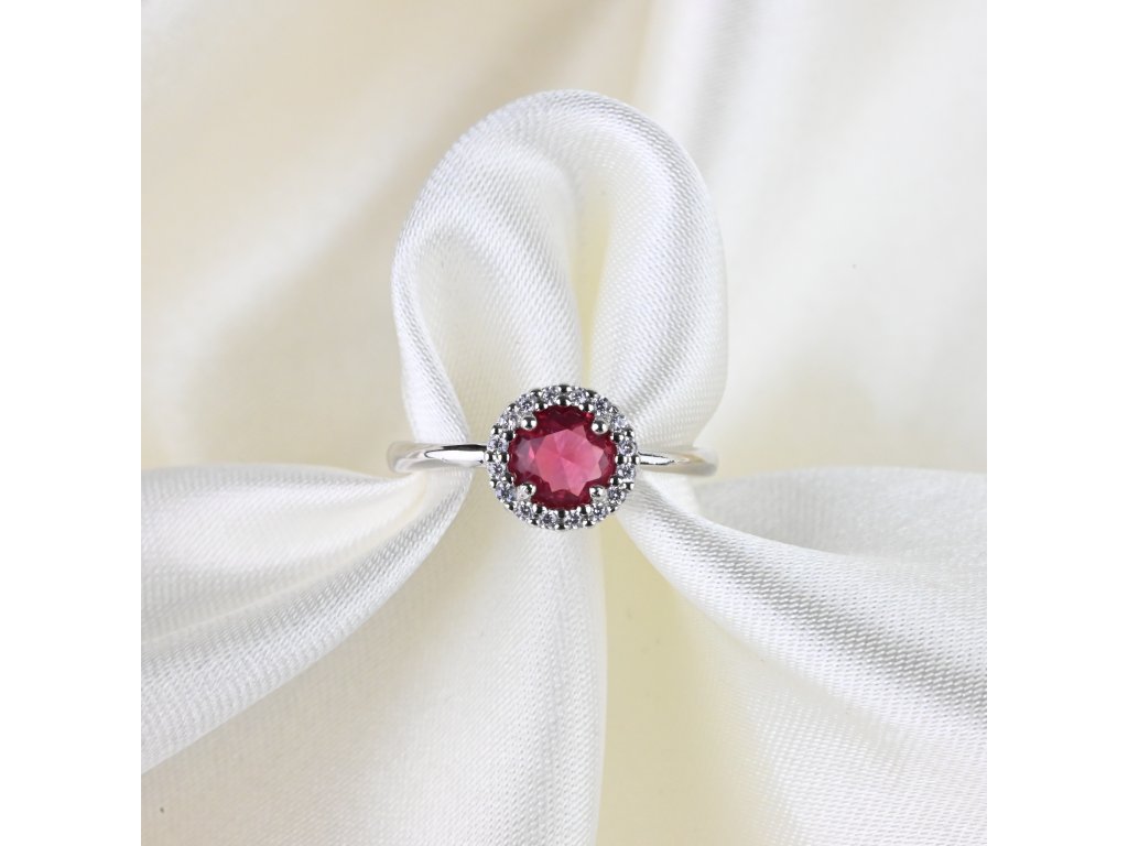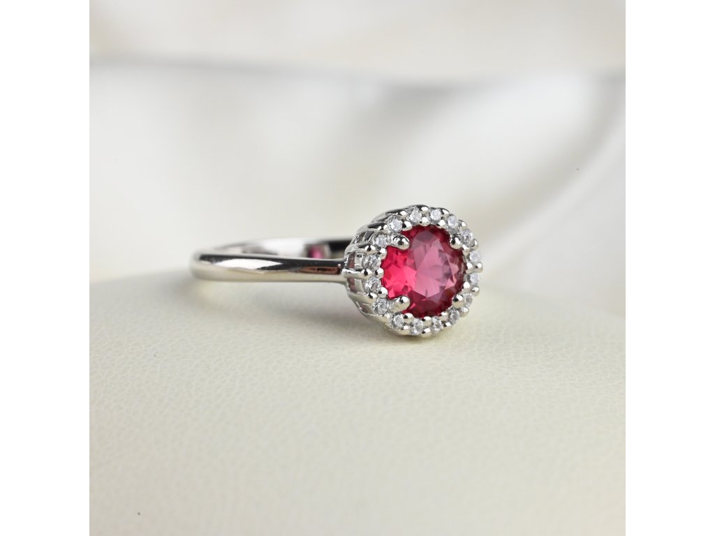 Stříbrný prsten s červeným kulatým zirkonem - Meucci SS387R